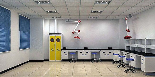 所有从化学实验室内排出的气体均需直接排出室外,而不能循环利用。因此,除非化学实验室也有洁净要求,否则均需保持其相对于相邻区域为负压。而是否选择100%全新风送风系统,应作为实验室危险评估的一个重要部分。实验室各个单元间设置了独立的排风系统,排风都安装在屋顶上。湿法化学间和加热间由于产生有毒、腐蚀、高温的气体,必须采用全新风处理。其他如工作人员进行计算机分析的通用实验间和进行材料测试的恒温恒湿间,100%全新风送风系统并不是唯一的选择。因为实验室不同的工艺职能,不一定要全新风通风或全新风空气处理。能满足工艺只能是首要的,100%的新风是针对通风柜的环境,而对于一般实验室循环空气处理能达到要求的,就不必要100%全新风。何况在全新风的空调环境下,能耗非常高。